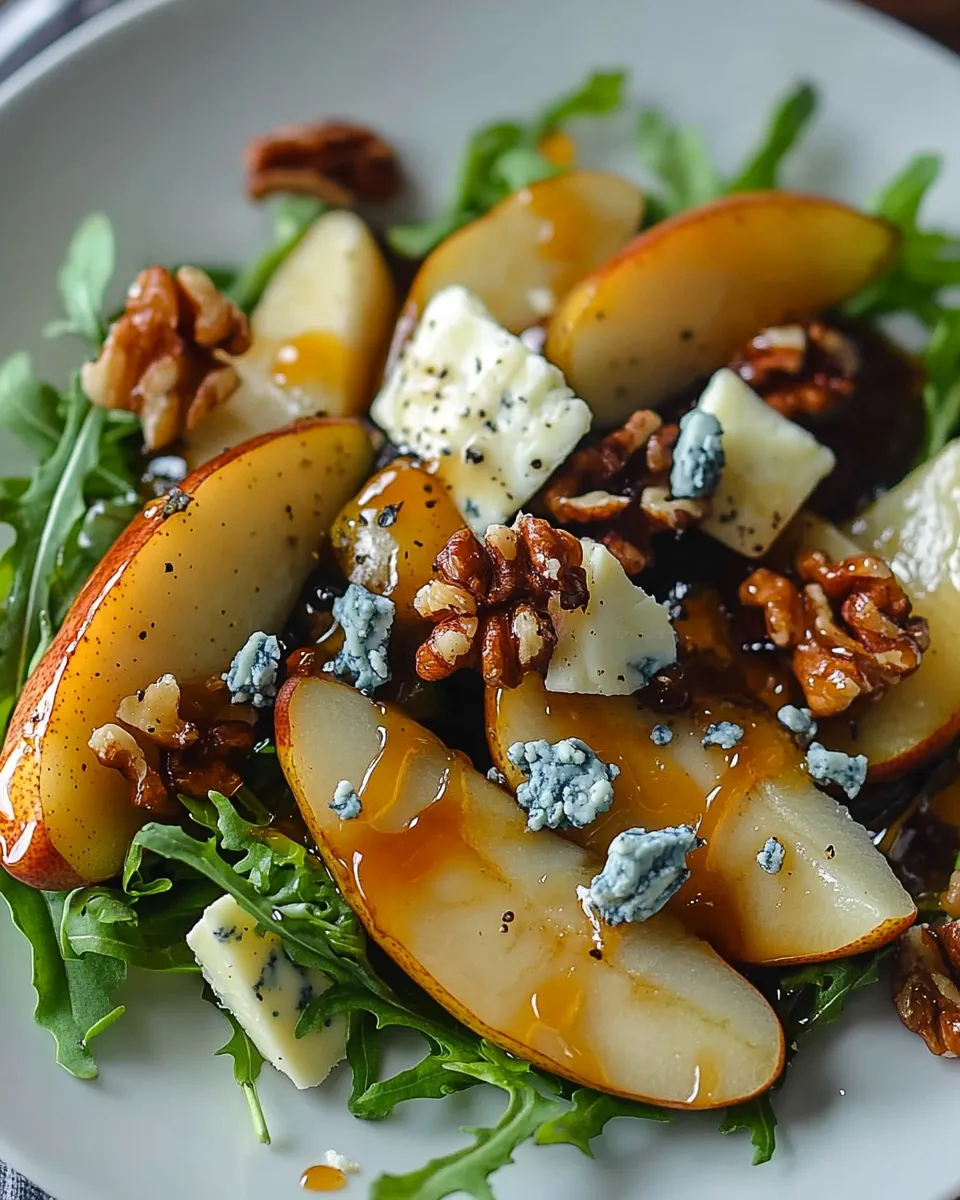 - Keywords: Caramelized Pear and Blue Cheese Salad, pear salad with blue cheese, sweet and savory salad, gourmet salad, easy pear salad
